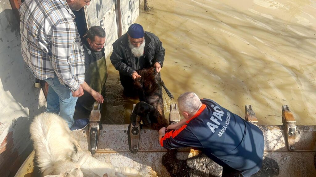 Manisa Gediz ovasında sağanak yağmurun sele dönüşmesi sonrasında besi çiftlikleri ve bağ damlarında mahsur kalan vatandaşlar ve hayvanlar Manisa Valiliğine bağlı AFAD ekiplerince saatler süren operasyonlarla böyle kurtarıldı.